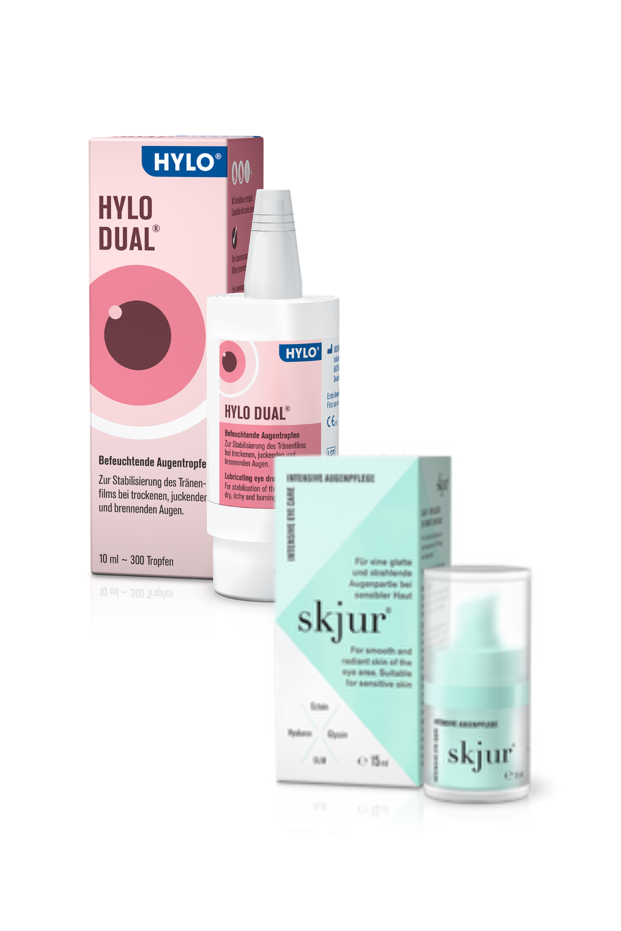 Jetzt mitmachen und gewinnen: Sichere dir mit etwas Glück einen von zehn Pflege-Duos bestehend aus HYLO DUAL® Augentropfen und der Skjur® Augencreme.
